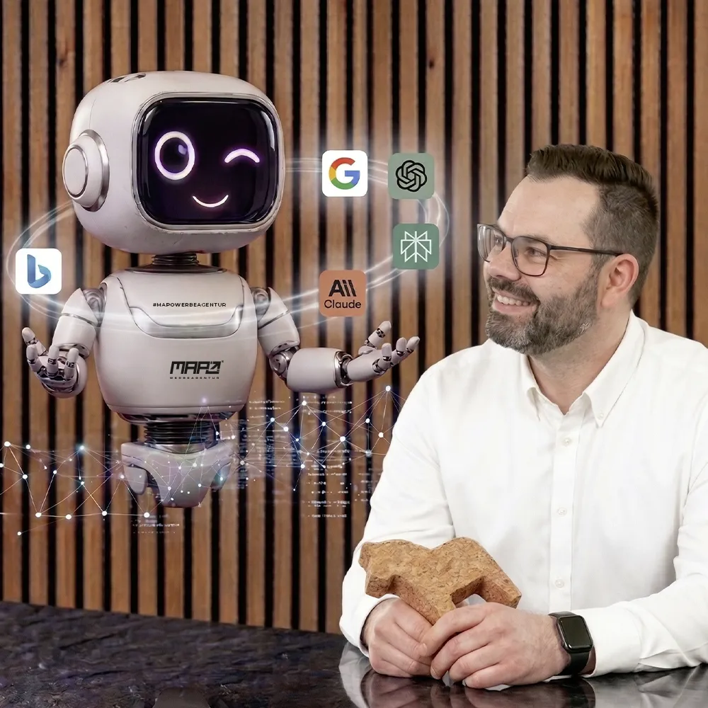 Mit MAPOKIY verbinden wir unsere Erfahrung als MAPO Werbeagentur, als offizieller Googler-Partner und jahrelange SEO Expertise mit einem klaren GEO-Prozess. Verständlich und mit einer handfesten Strategie und so, dass du am Ende weißt: Wo stehe ich gerade und was muss getan werden, um sichtbarer zu werden.